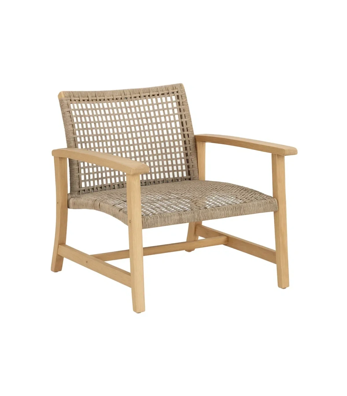 Poltrona in legno di quercia con rivestimento in poliestere beige
