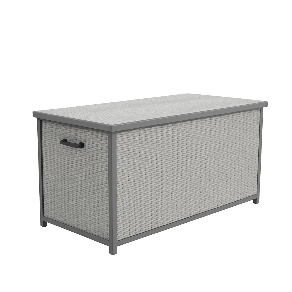 Scatola di stoccaggio rettangolare in rattan sintetico grigio con struttura in metallo